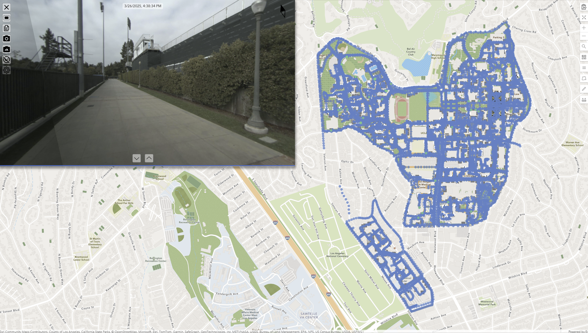 In early 2025, UCLA partnered with GeoCam to capture and modernize its pedestrian infrastructure data. The goal was ambitious but clear: to produce a high-accuracy, imagery-backed digital map of every sidewalk, pathway, ramp, and ADA-related feature on UCLA’s 419 acre campus.